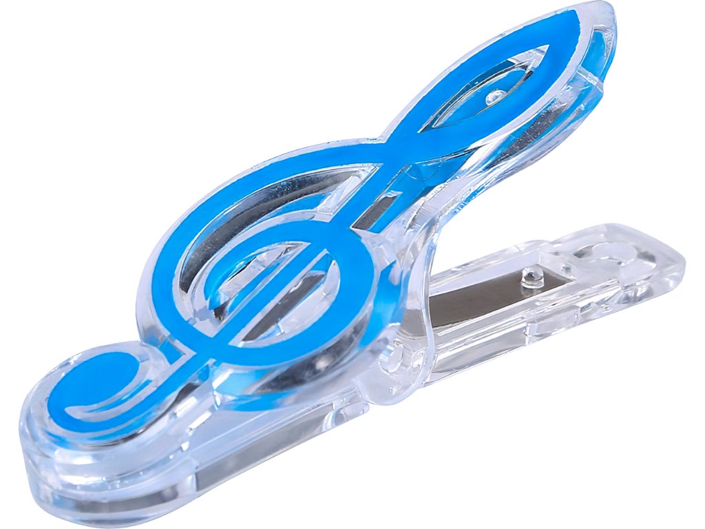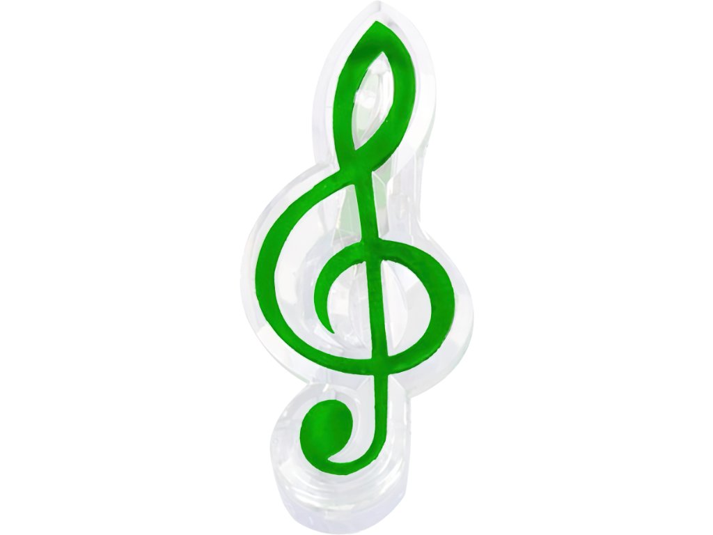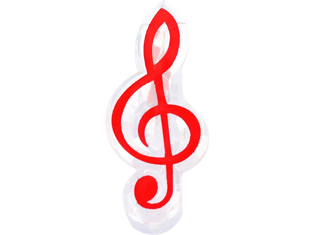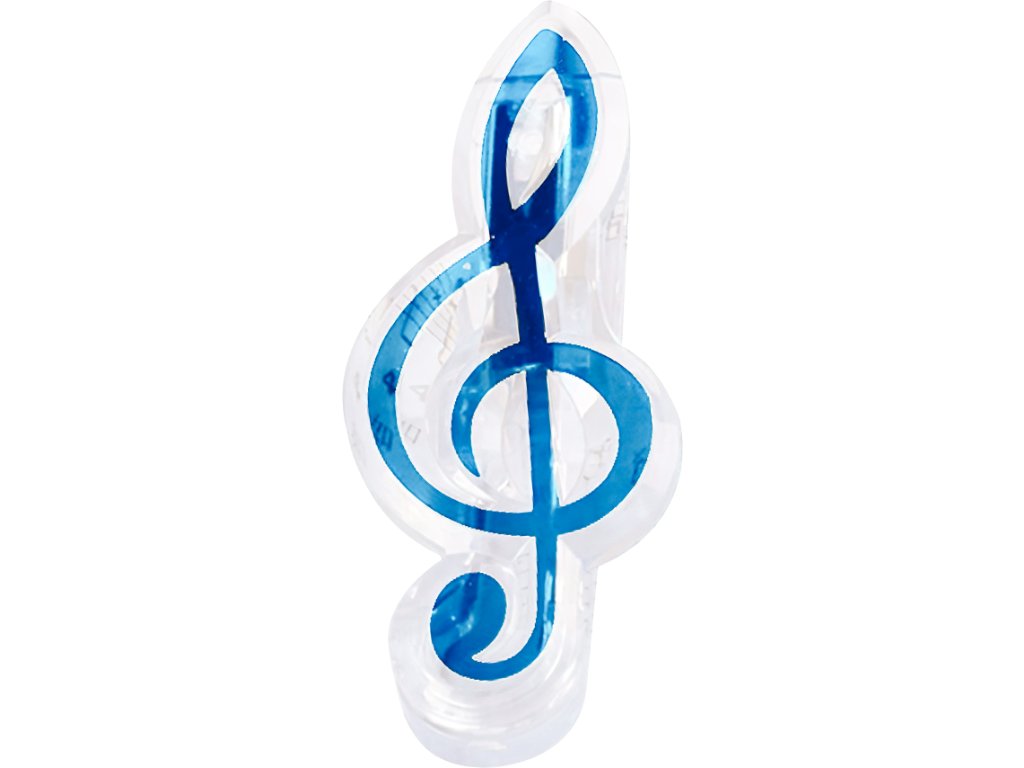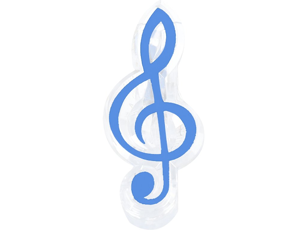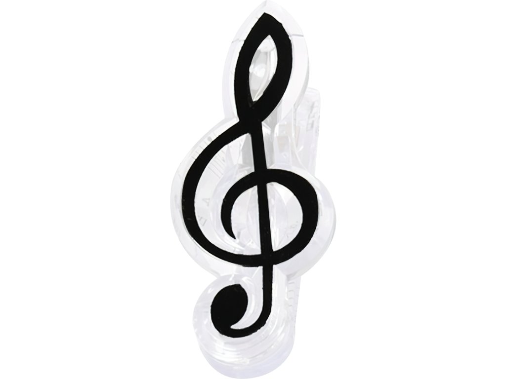 Plastový barevný kolíček ve tvaru houslového klíče.