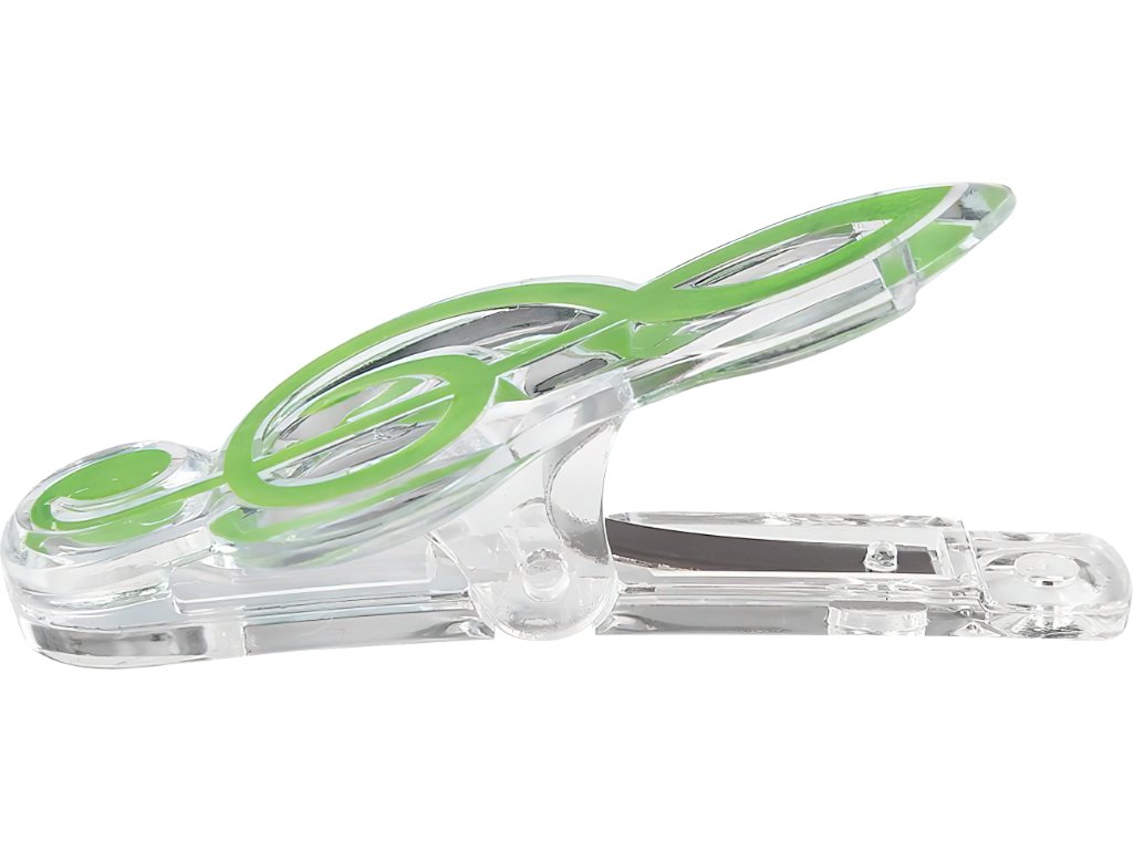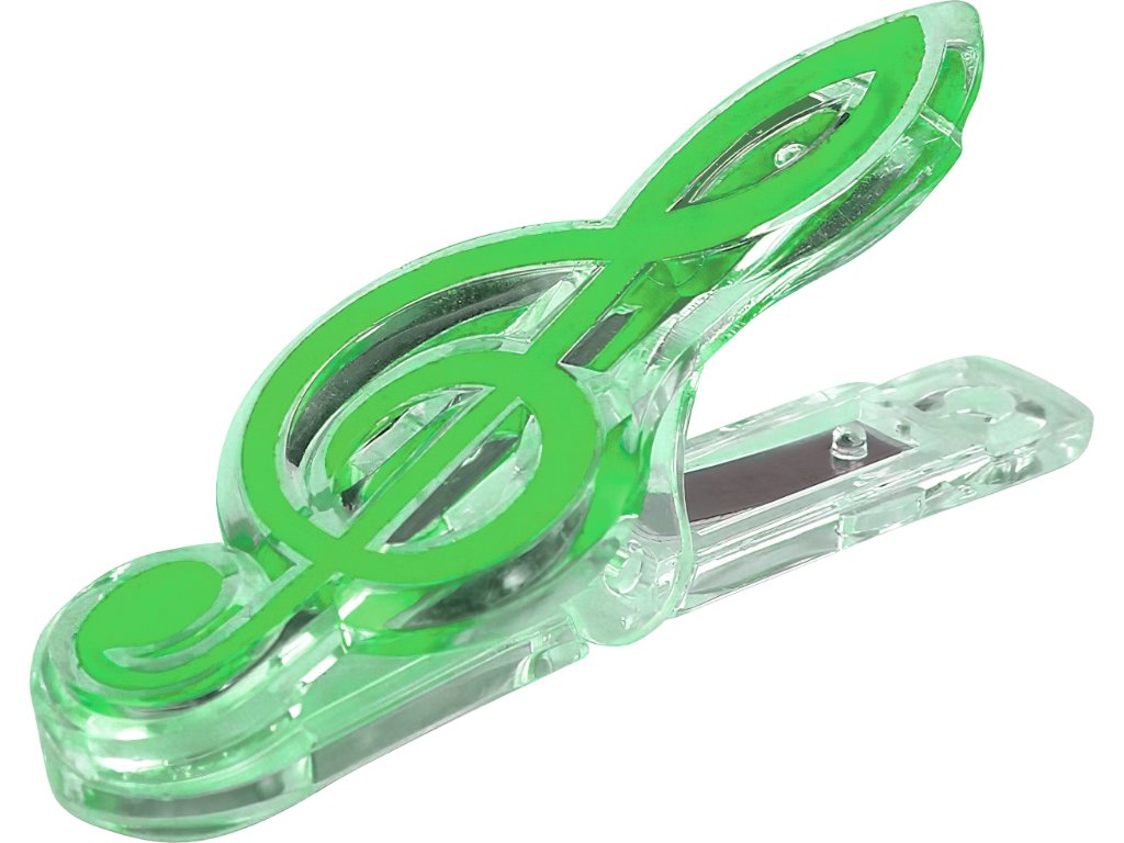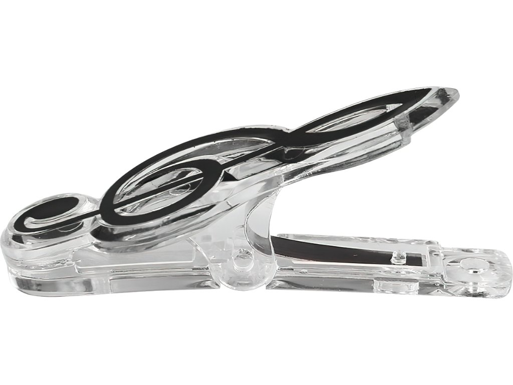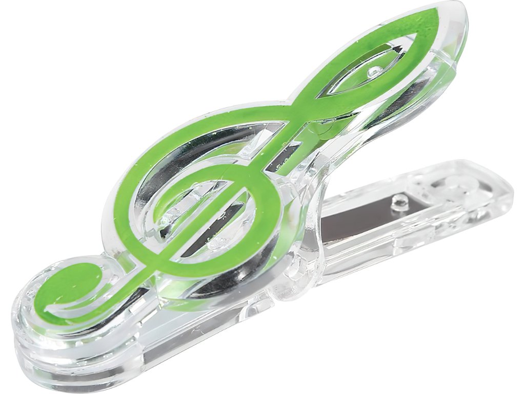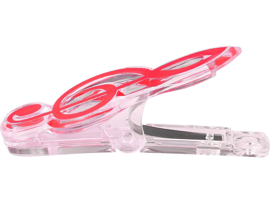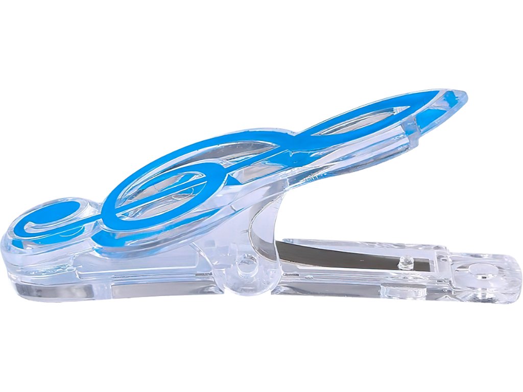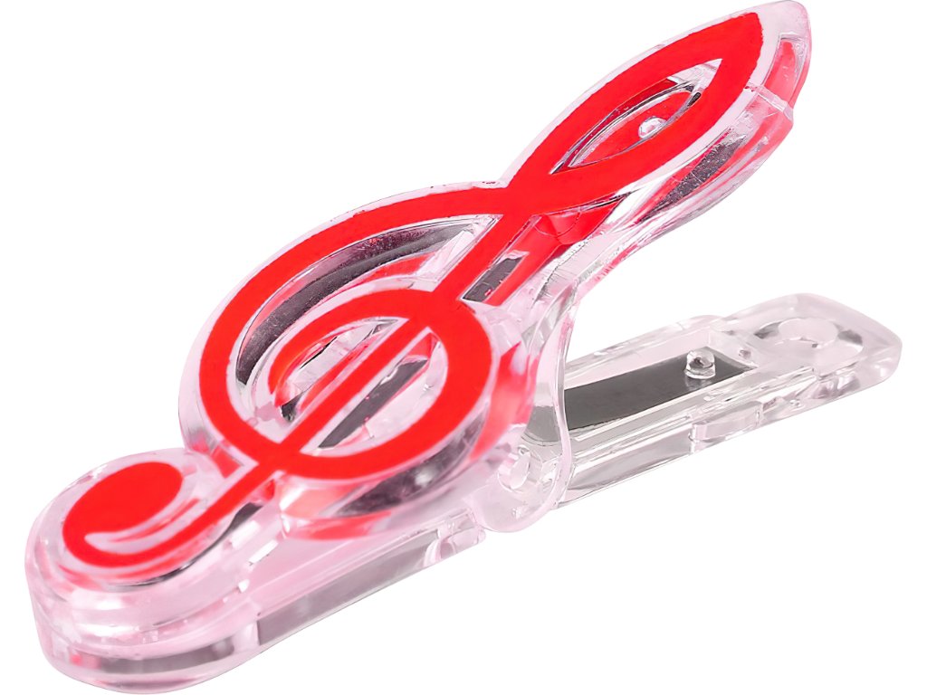 Plastový barevný kolíček ve tvaru houslového klíče.