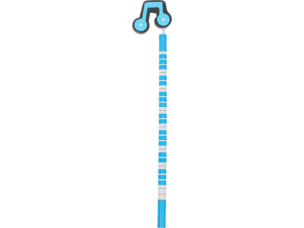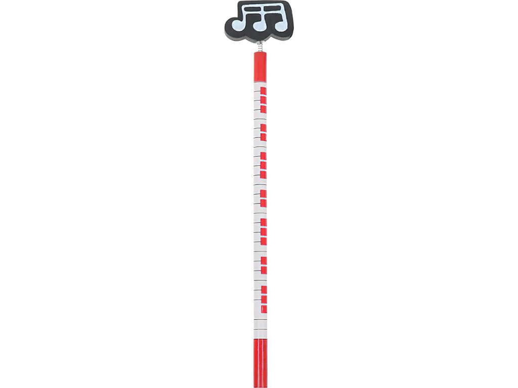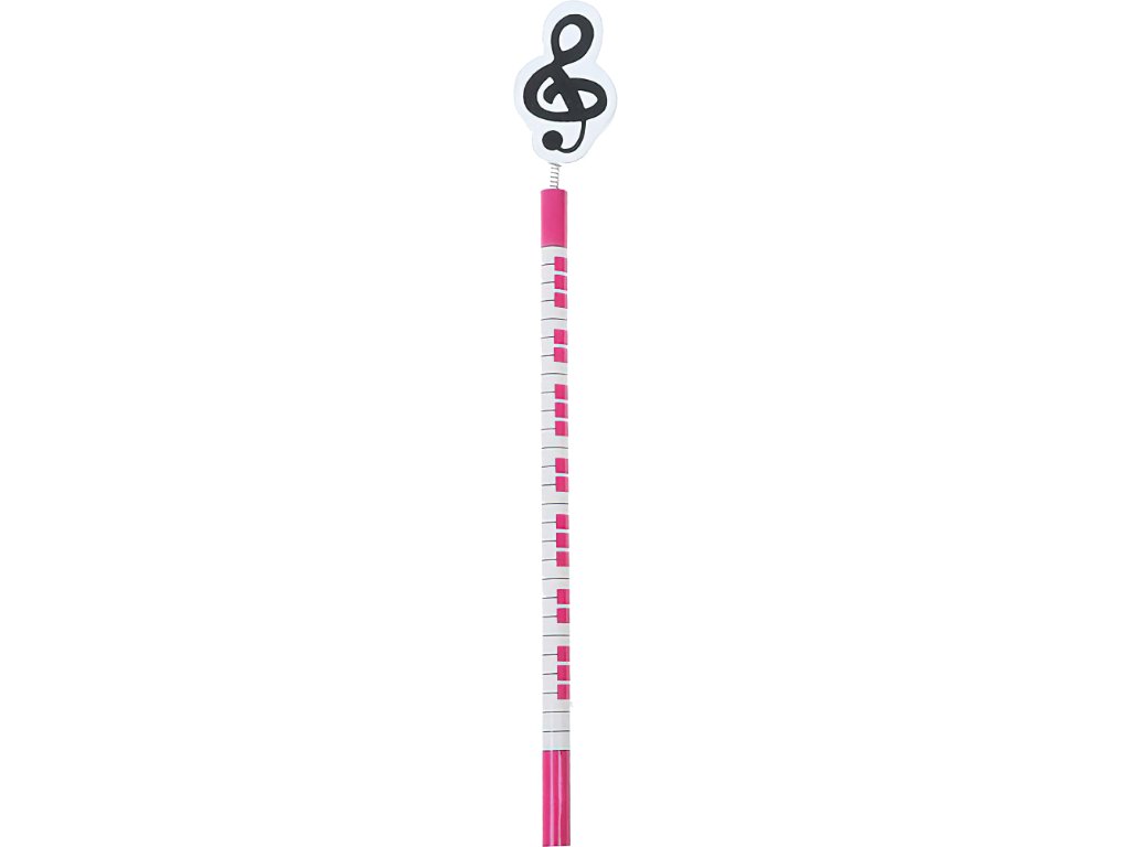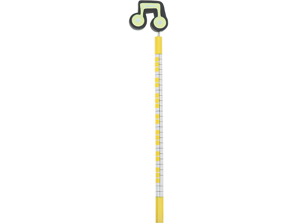 Na vrcholu tužky se nachází dřevěná nota/noty/houslový klíč připevněné na pérku.