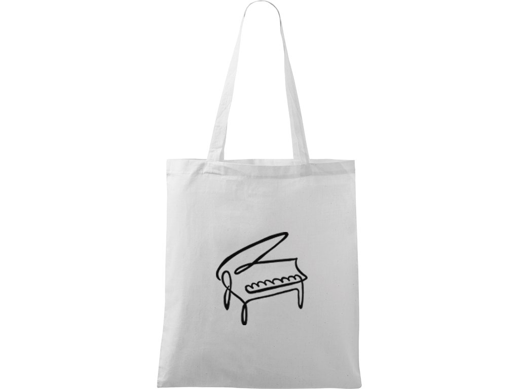 Optimální velikost tašky 42 x 38 cm s dlouhými popruhy (60 x 2,5 cm) umožňuje pohodlné nošení v ruce i přes rameno, zatímco praktická a skladná konstrukce nabízí dostatek prostoru pro vaše každodenní potřeby – a ideální umístění motivu vždy nechá vyniknout jednotahový klavír.